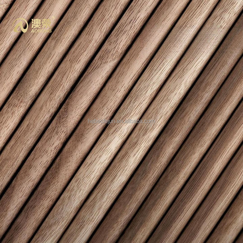 奥龙天然橡木柔性内墙装饰壁板覆层凹槽手鼓木效果墙板